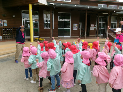 年少・年中組は1周、年長組は2周走りました!