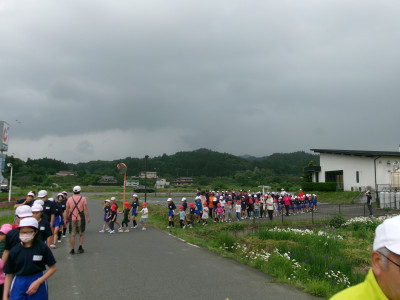 今回は第一次避難の園庭築山前、第二次避難小学校体育館前と