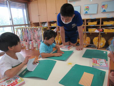 2024年8月30日 14時56分8/30町内の小学校6年生5名が棚倉幼稚園に職場体験に来ました年中組と年長組、各クラス1名ずつ入ってもらい、子どもたちと一緒に遊んだり、クラスの先生のお手伝いをしたりしながら、幼稚園の先生の仕事について実際に体験してもらいました。